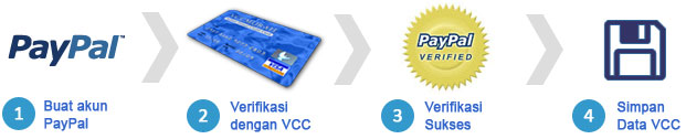 Buat anda yang sudah mendaftar (punya account) di Paypal tetapi belum diverifikasi, sekarang ada solusi praktis untuk mengaktifkan Paypal anda agar dapat digunakan untuk wthdrawl (penarikan uang) yang berasal dari PPC (pay per click)maupun PTC (pay to click). Solusi yang disebut adalah VCC (vritual credit card) merupakan sebuah kartu kredit vrtual yang dapat anda gunakan untuk mengaktifkan akun Paypal anda. Selain itu VCC ini sangat efektif bagi anda yang merasa khawatir apabila menggunakan kartu kredit dalam arti sebenarnya, dikarenakan adanya kasus carding yang pernah terjadi di Indonesia beberapa waktu yang lalu. Masalahnya kalau kita browsing di internet akan banyak sekali jasa-jasa penjualan VCC akan tetapi di tempat ini anda akan mendapatkan kemudahan-kemudahan dan dijamin Paypal anda akan terverifikasi hanya dalam waktu 5 menit.Oke deh biar gak bingung saya jelaskan dulu apa yang dinamakan VCC itu.